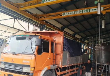 Setelah layanan gudang berjalan di tahun 2025, kami mulai melayani pengiriman domestik yang hingga saat ini baru tercapai FOT 1 Fuso Loose Back, 970 kg.